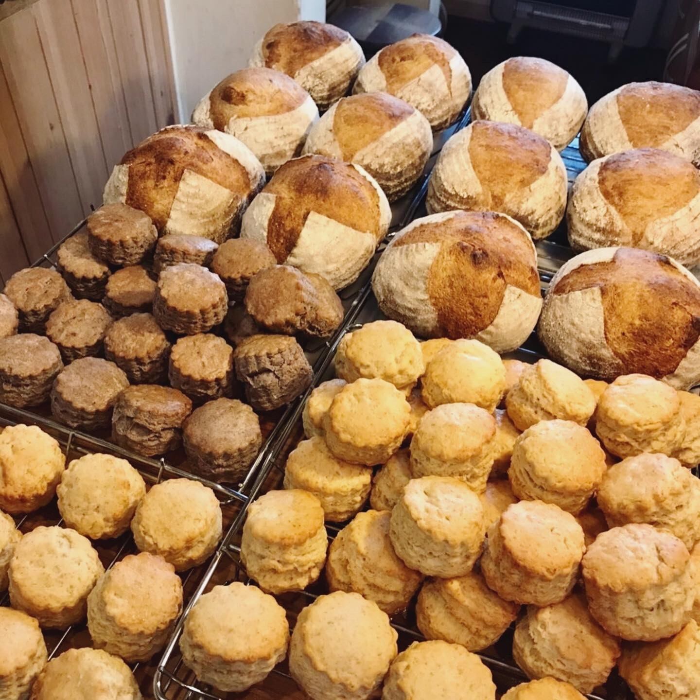 ○古代米スコーン 北海道産小麦粉、北海道産全粒粉、宮城県産古代米粉、豆乳、米油